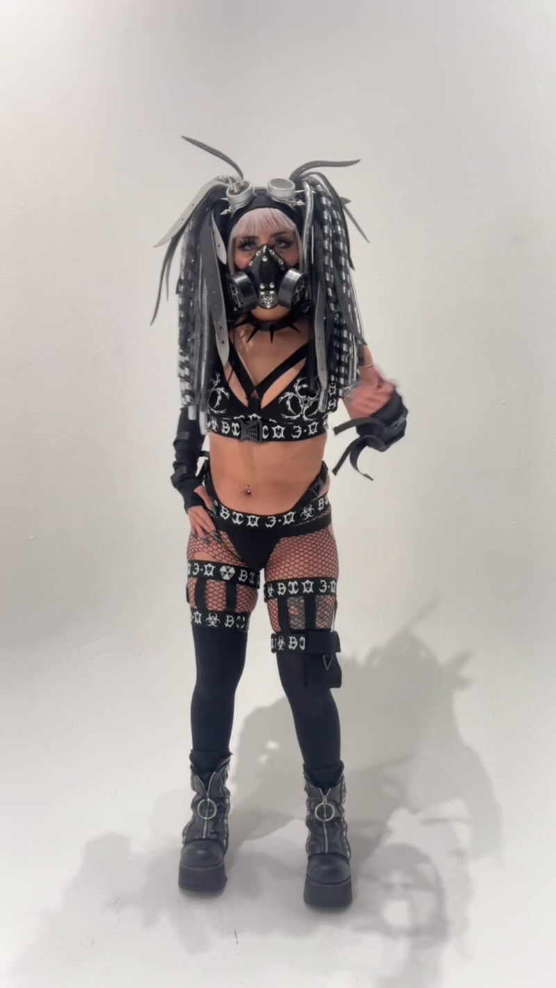 The BIO THREAT BRA features a striking front harness detail paired with high-contrast, reflective biohazard symbols. Made with custom logo elastic, it delivers that signature Lip Service x Nikiski Noir contamination aesthetic with a secure, danceable fit.