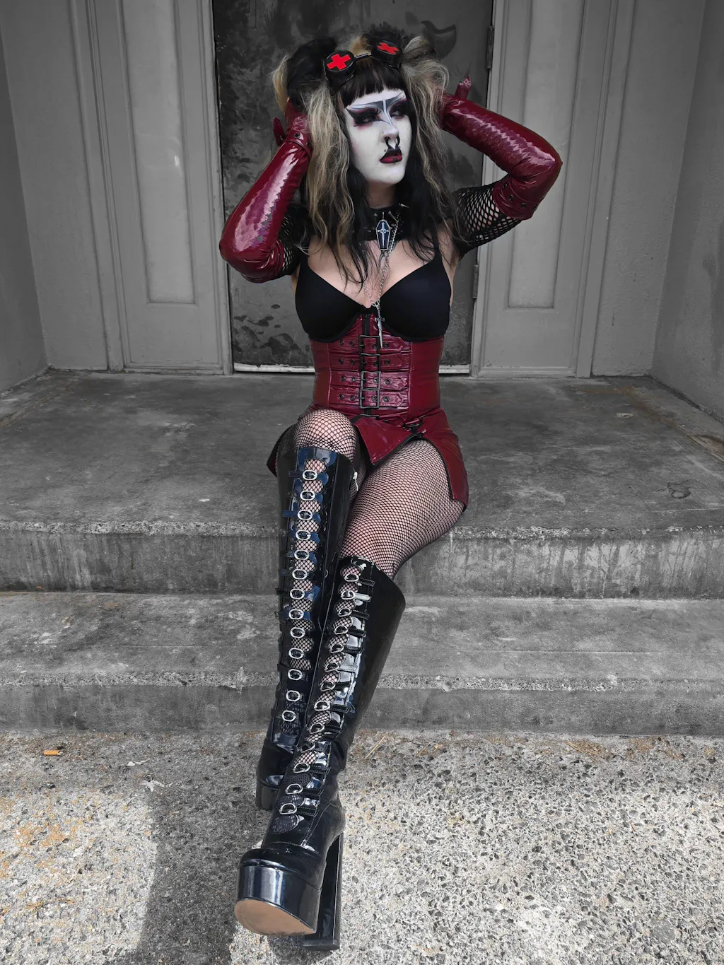 Our classic vinyl waist cincher has steel coil boning, a zipper closure and 5 buckles up the front you can adjust for the look and feel you want!! Your go to Vinyl Gear!!! Now available in VAMPIRE RED!